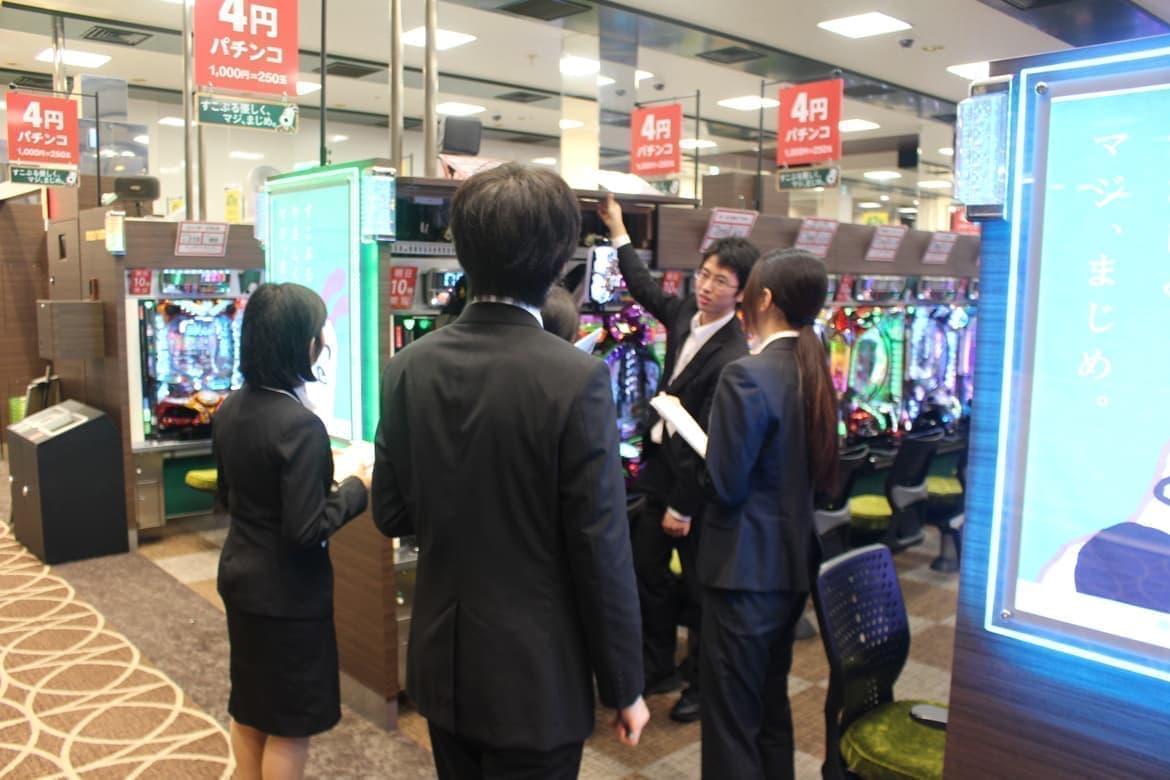 パチンコ店への入店が初めてのメンバーも多く、興味津々!